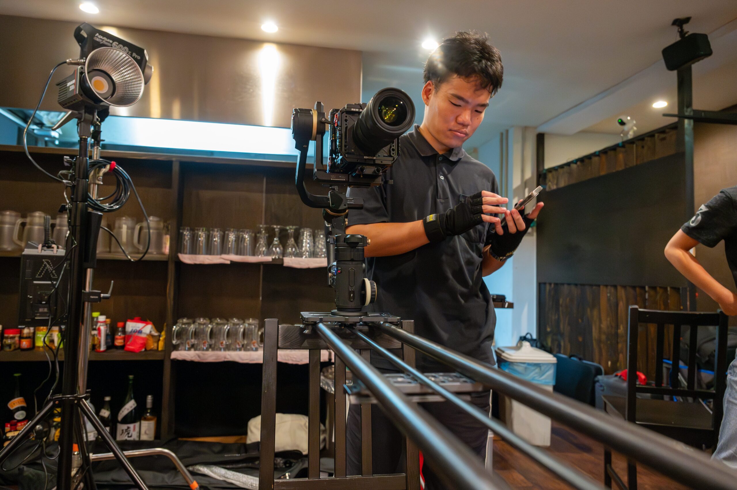 撮影では、事前の構成通りに進めるだけでなく、その場で生まれる動きを丁寧に観察しながら構図を組み立てていきます。